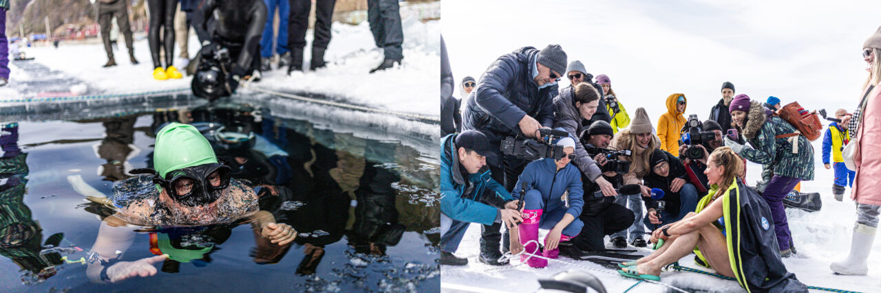 Во второй день фестиваля россиянка Екатерина Некрасова проплыла подо льдом озера 122 метра в длину. Спортсменка была без гидрокостюма, в обычном купальнике и ластах.