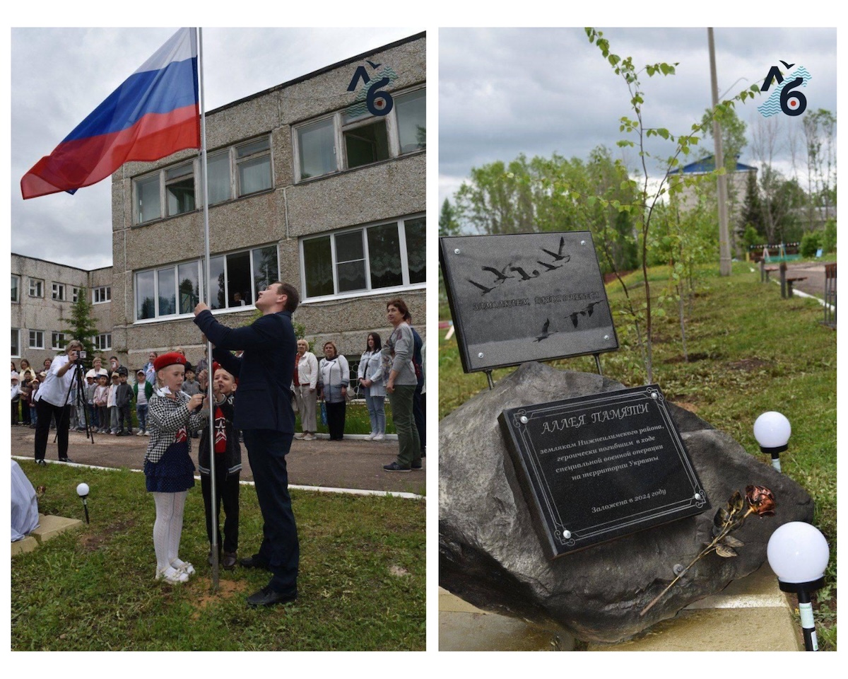 Под гимн двое воспитанников детсада в форме юнармейцев вместе с участником войны в Украине подняли российский флаг.