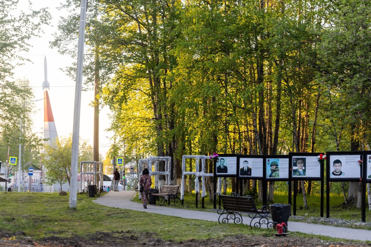 Мы сидим на скамейке возле Вечного огня. На аллее ряд фотографий, расставленных параллельно друг другу. Все это — погибшие на СВО жители Байкальска. После крайних фотографий идет длинный ряд пустых рамок, еще обмотанных белым укрывным материалом. Это заготовки для портретов тех, кто вернется домой грузом 200. Подростки не обращают на них внимания, это часть привычного пейзажа.