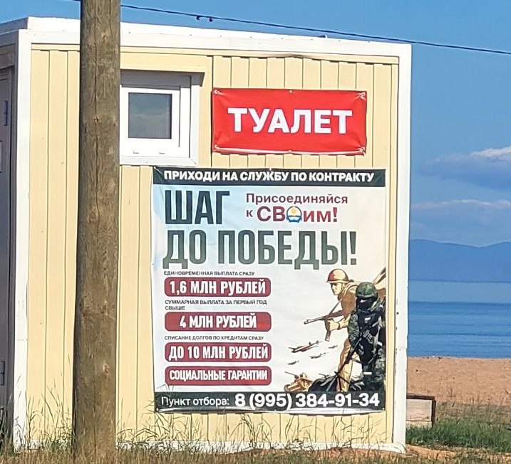 Журналист из Бурятии возмутился на своей странице во «Вконтакте»: «Неужели в Гремячинске, где многие гости Бурятии впервые встречаются с Байкалом, не нашлось более достойного места для баннера, призывающего послужить Отечеству?»