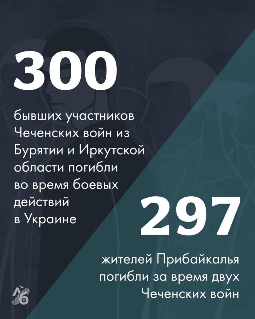 Мы собираем некрологи, опубликованные в открытых источниках. На днях мы добавили в наш список трехсотого погибшего, у которого в некрологе указано, что он участвовал в боевых действиях в Чечне. При этом, в самой Чечне за обе войны погибли 297 жителей Бурятии и Иркутской области (87 и 210 — по данным союза солдатских матерей).