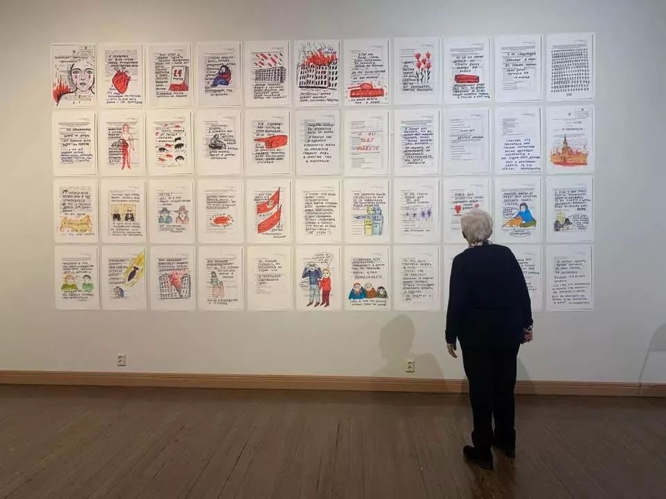Я не была оригинальна, и на второй выставке «Художники против Кремля» снова выставляла свой отчет в Минюст, в котором рассказываю Минюсту, где я. В период между первой и второй выставками репрессивные органы России объявили меня в розыск, и я подумала, что это хороший повод снова поговорить о репрессиях и войне. Почему бы и нет? Моя страна всё ещё не устала вести войну, а я стараюсь находить в себе силы говорить о том, что я с этим не согласна.