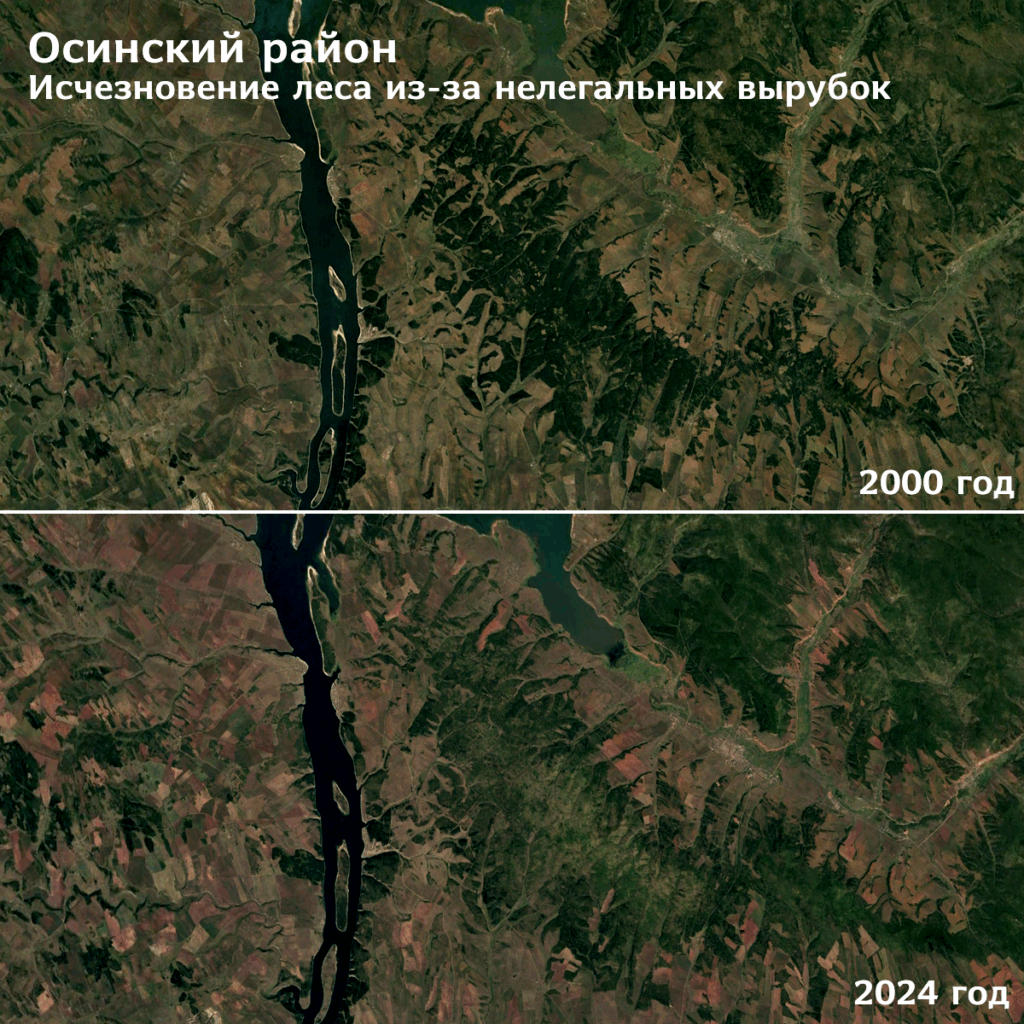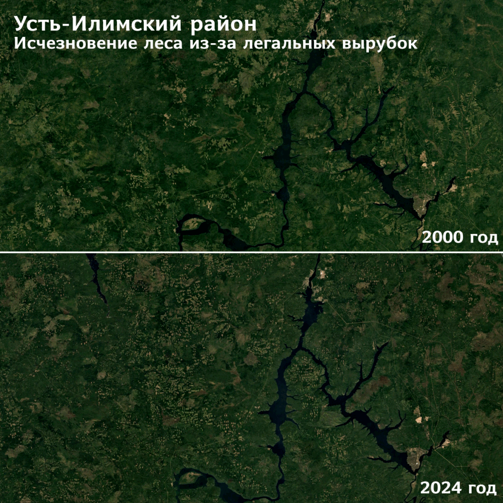 На космоснимках хорошо видно, как по-разному исчезает лес из-за различных причин. В зонах, где проводят легальные вырубки, появляются и множатся огромные прямоугольные пустыри — деляны.